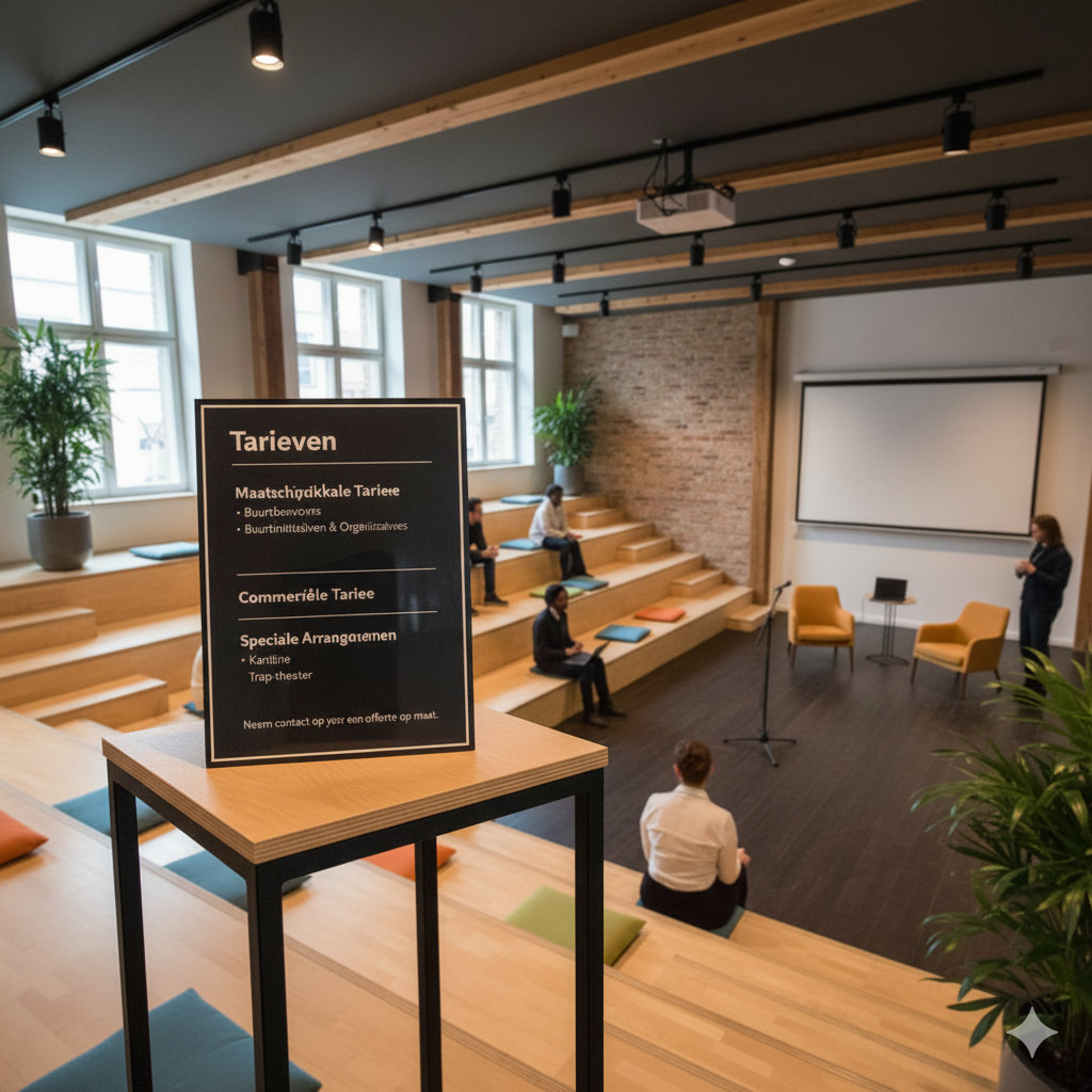 Wij hanteren maatschappelijke tarieven voor buurtbewoners, buurtinitiatieven en maatschappelijke organisaties zonder subsidie. Wil je de kantine of het trap-theatertje huren? Neem contact met ons op voor de mogelijkheden en actuele prijzen